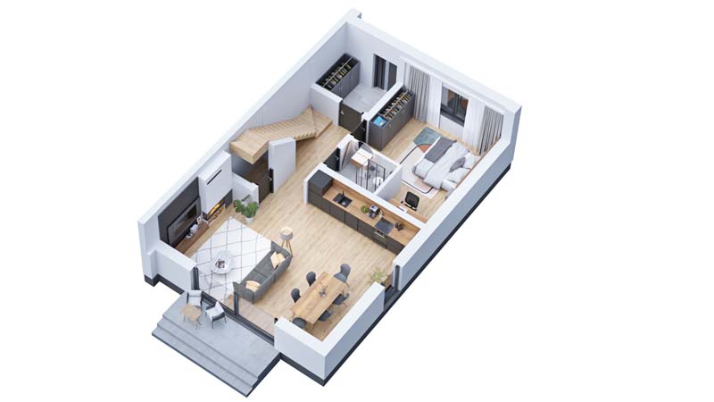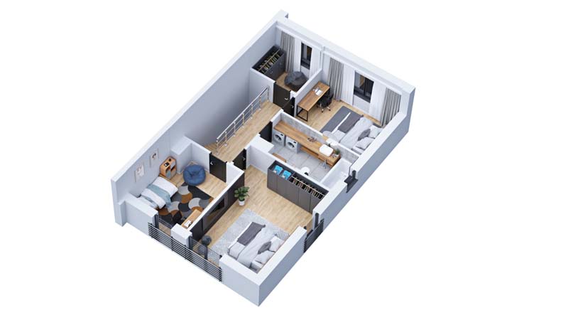 Lewy segment. Dzięki przemyślanemu rozkładowi pomieszczeń, każdy metr kwadratowy jest maksymalnie wykorzystany.